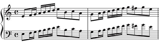 譜例① 右手パートのユニゾン(1〜2小節目)