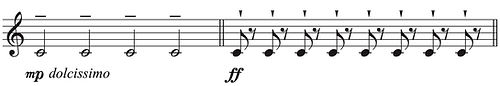 1小節目:指の爪先を,奥へとはじくように(↙)